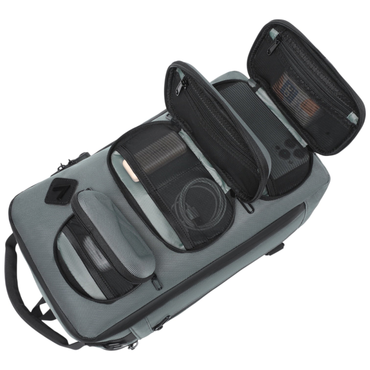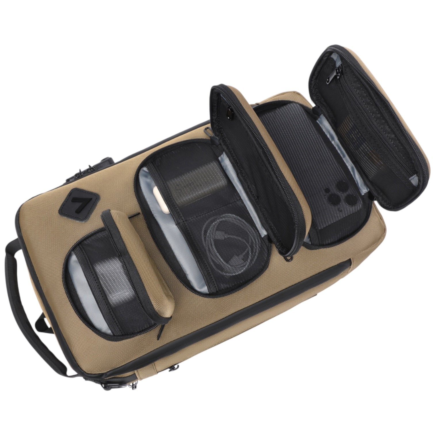 A padded laptop compartment fits devices up to 16”, protected by internal dividers that keep your gear neatly separated. Built-in organization keeps your cables, notebooks, and daily tools in place, while elastic mesh pockets and an admin panel make it easy to access smaller essentials like pens, cards, or your phone.