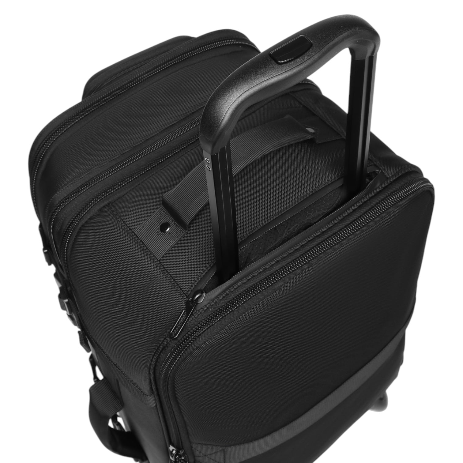Comfort is prioritized through padded, ergonomic shoulder straps that tuck away cleanly when not in use, plus a breathable back panel for extended wear. Smooth, silent wheels and a reinforced telescopic handle ensure steady rolling control across airport floors, sidewalks, and hotel corridors.