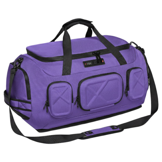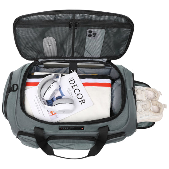 Spacious and intelligently organized, this bag opens clamshell-style to reveal a large main compartment with removable, padded dividers—making it easy to pack like a suitcase and organize like a pro. The built-in shoe compartment keeps your footwear separate and ventilated, while internal mesh pockets are perfect for storing chargers, cords, and smaller essentials.